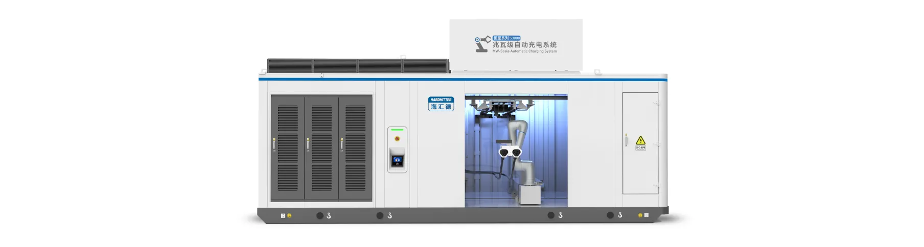 海汇德兆瓦级自动充电系统,专为矿山、港口、船舶、机车等重载运输电动化场景打造,致力于提供新一代智能无人化充电运营解决方案。系统深度融合超大功率充电、全程无人化运行与高精度柔性控制等关键技术,支持接入海汇德云平台,兼具本地部署与灵活定制能力。